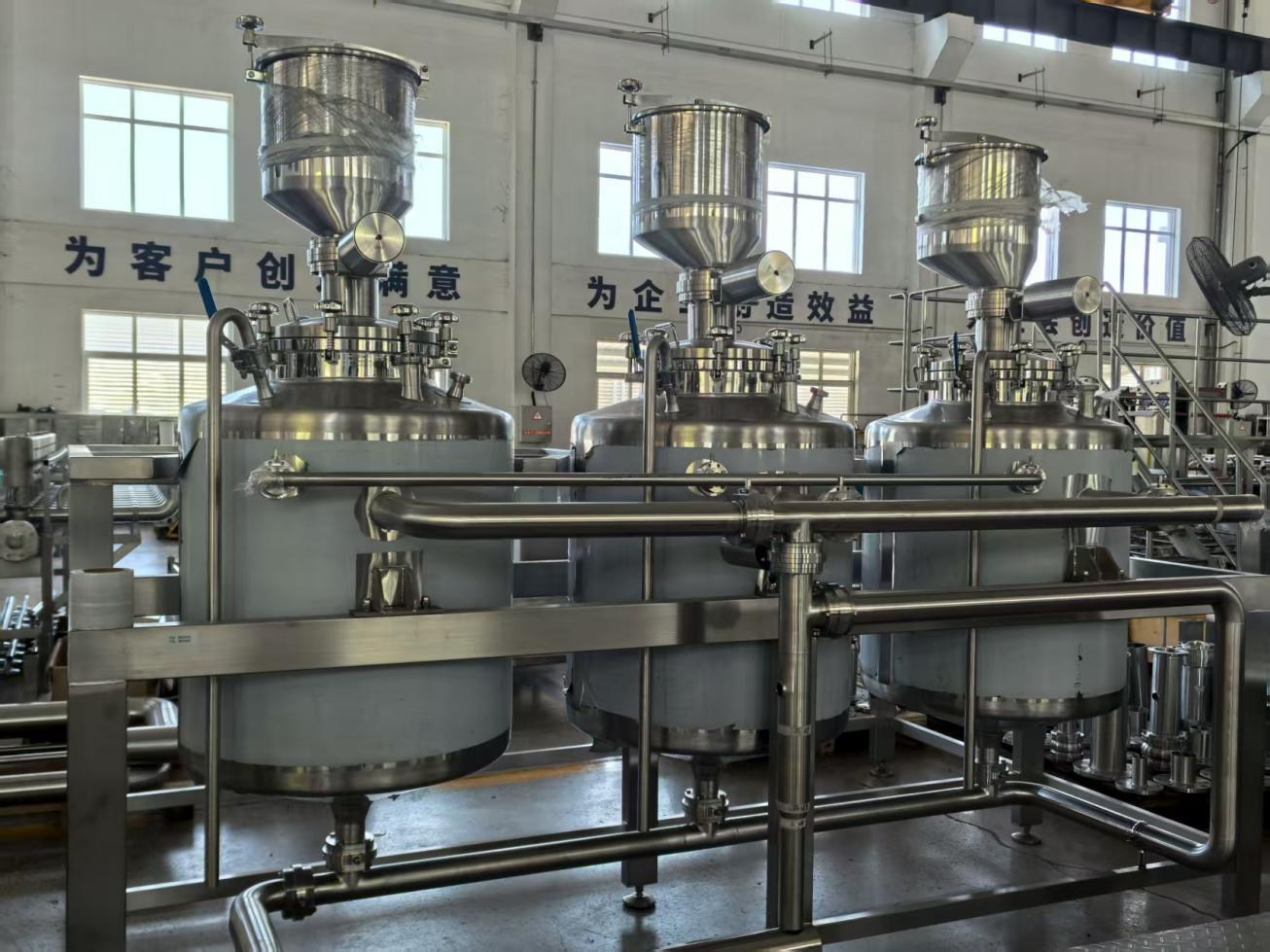 3、該全自動調配系統:該全自動調配系統采用防混閥閥陣與集成管路設計,精準調控進料流量及溫度,具備自動加料、自動控溫、智能混合和在線清洗功能,通過稱重-流量雙反饋精準調配,可達到工藝需求的溶解、剪切、乳化等效果。系統運行高效安全,杜絕交叉污染,符合衛(wèi)生標準。系統支持MES系統數據對接,采用觸控式人機界面,支持手動/自動模式切換及一鍵式全自動操作;可實現生產數據自動采集、記錄分析及曲線可視化功能。全自動的操作節(jié)約生產日化產品的成本,并且通過控制裝置精準實現自動化調節(jié)操作,提高生產效率。
