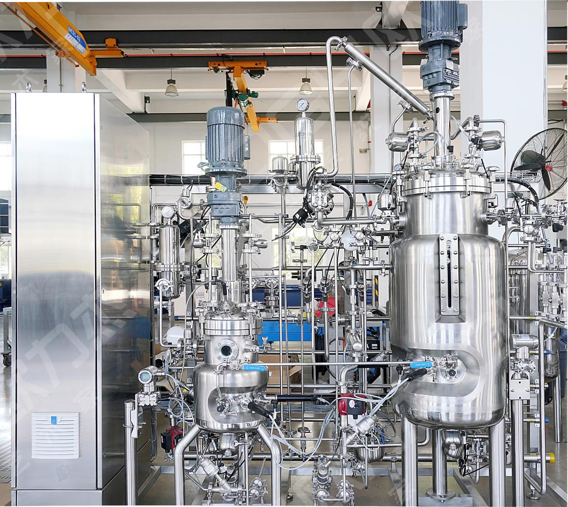 1、自動型生物發(fā)酵系統:自動型生物發(fā)酵系統就是為微生物生長、發(fā)酵、代謝提供合適的溫度、壓力、氧氣、營養(yǎng)物質等條件的生物反應容器,也叫生物反應器,常見的生物發(fā)酵罐有抗生素、氨基酸、酶制劑、維生素、有機酸等發(fā)酵,我公司設計的自動型生物發(fā)酵系統可實現生物發(fā)酵過程全自動化控制,通過對過程工藝參數(發(fā)酵培養(yǎng)溫度和滅菌溫度、pH值、DO、通氣量、罐壓、料液體積、尾氣流量、攪拌轉速、補料消泡等)的監(jiān)測和控制,控制系統會自動記錄所有批次發(fā)酵過程參數,后期可擴展與尾氣質譜、紅外、拉曼光譜組合方便進行智能化發(fā)酵過程優(yōu)化。最終使生物代謝朝著有利于生產的方向發(fā)展,有效地提高發(fā)酵單位,控制產品的質量。