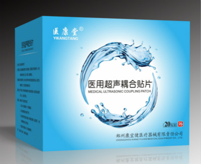 醫(yī)用超聲耦合貼片包括固體凝膠片和包裝盒,其中固體凝膠片由水溶性聚合物凝膠、純化水、保濕劑、防腐劑、色素等組成。本實(shí)用新型透明、柔韌而富有彈性,且對皮膚無毒性、無刺激、無致敏,導(dǎo)聲性能優(yōu)異,超聲圖像清晰。 醫(yī)用超聲耦合貼片用于超聲檢測時附著于超聲探頭的耦合貼片,提高超聲檢查的圖像清晰度,與傳統(tǒng)的超聲波能量轉(zhuǎn)移比有優(yōu)越性。