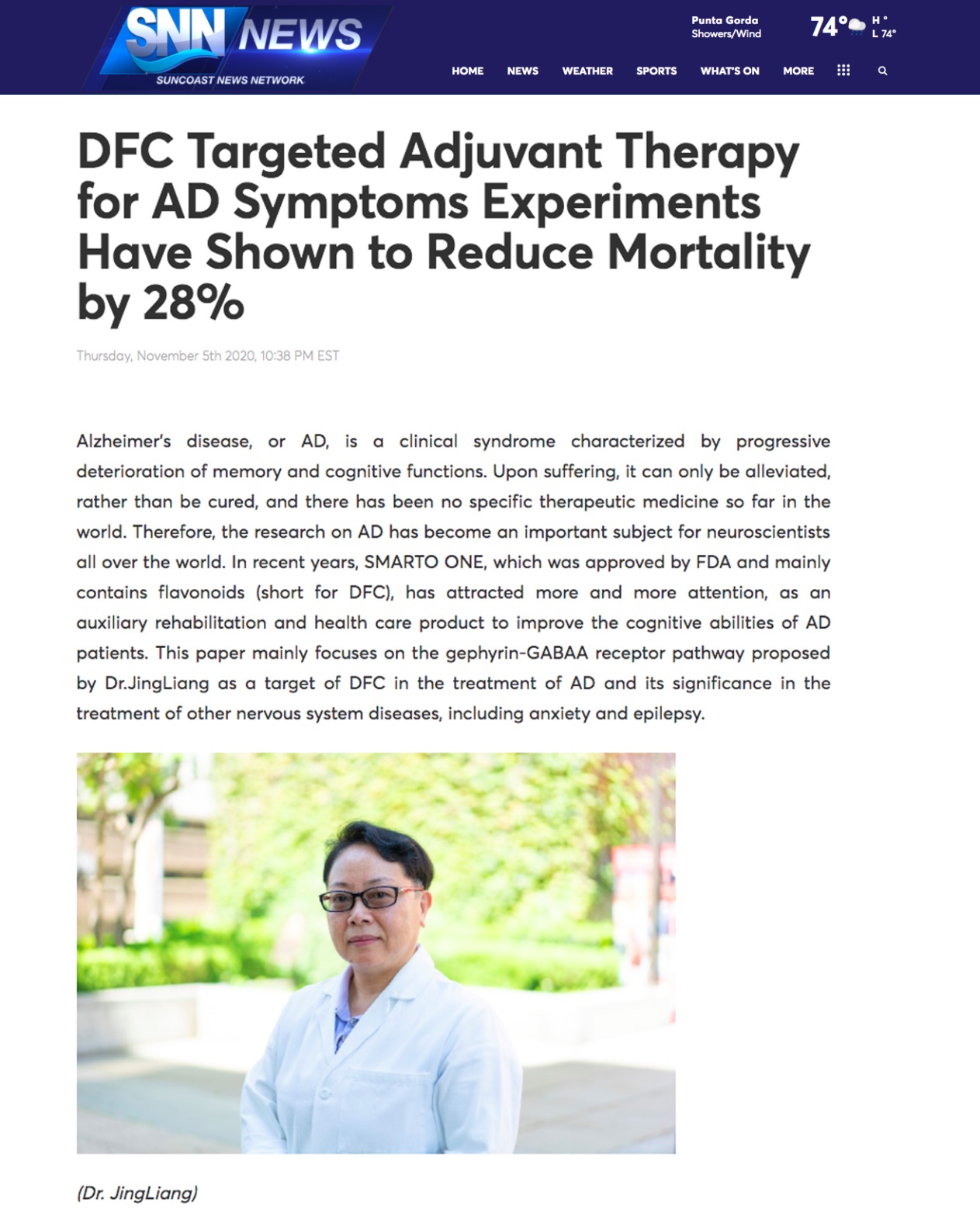 據(jù)SNN美國新聞社報道: 阿爾茨海默癥(Alzheimer's disease)簡稱AD,是一種以記憶功能和認知功能進行性退化為特征的臨床綜合征,發(fā)病后只能緩解不可逆轉(zhuǎn),世界上尚無特效治療藥物,因此針對AD的研究成為全球神經(jīng)科學(xué)家潛心研究的重要課題。近年,美國FDA批準主要含有黃酮類化合物(簡稱D黃酮或DFC)的SMARTO ONE作為提升AD病人認知能力的輔助康復(fù)保健品,受到越來越多人的關(guān)注。本文主要關(guān)注Dr.JingLiang提出的gephyrin-GABAA受體通路作為DFC治療阿爾茨海默病的靶點,以及對其它神經(jīng)系統(tǒng)疾病如焦慮癥、癲癇治療上的意義。
