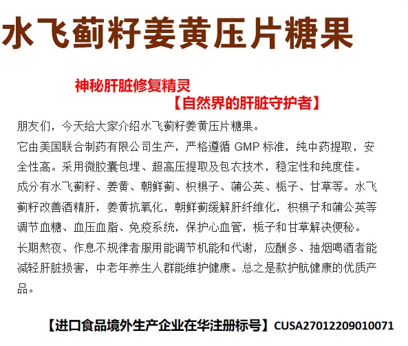 【產(chǎn)品名稱】:水飛薊籽姜黃壓片糖果 進口食品