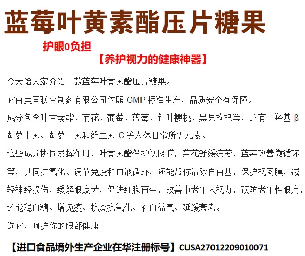 【產(chǎn)品名稱】:藍莓葉黃素酯 壓片糖果 進口食品