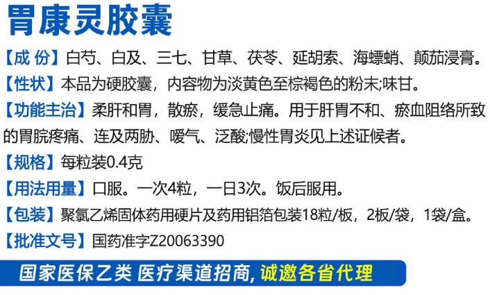 【產(chǎn)品名稱】:胃康靈膠囊
