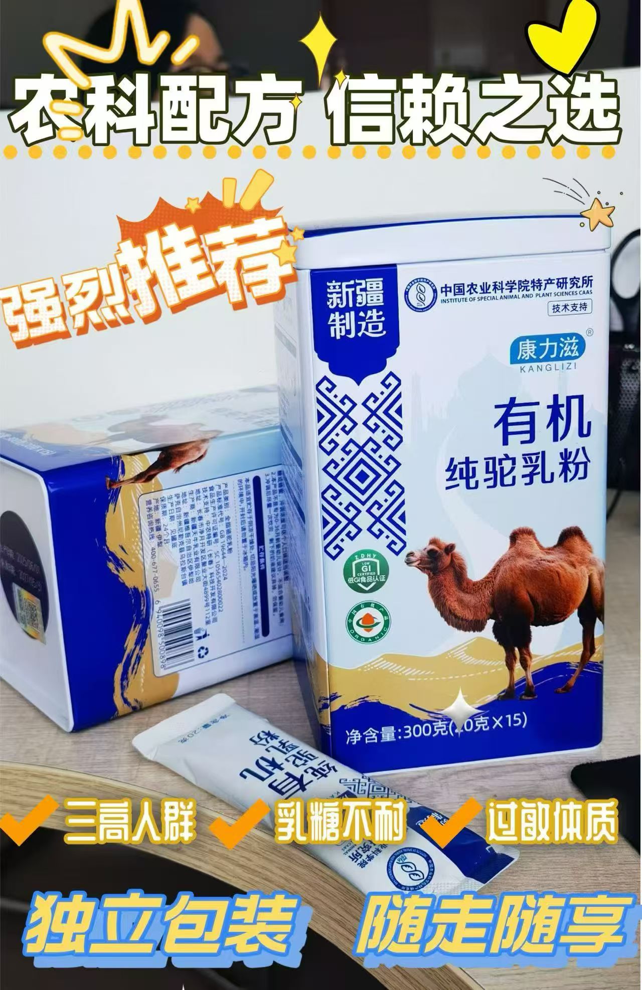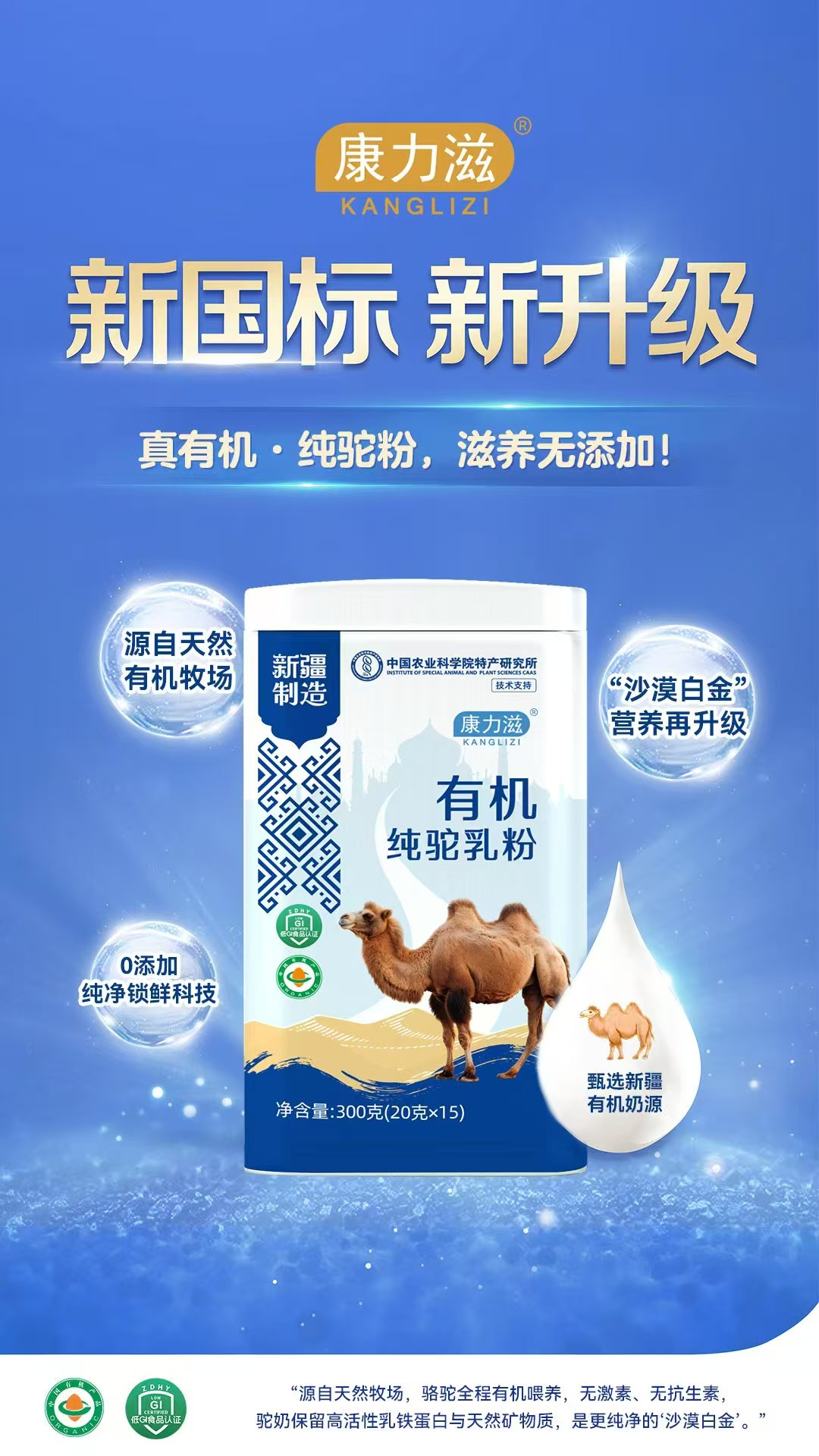 【產(chǎn)品名稱】:康力滋有機(jī)純駝乳粉