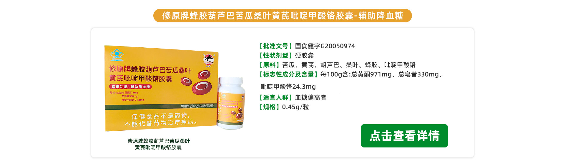 修原牌蜂膠葫蘆巴苦瓜桑葉黃芪吡啶甲酸鉻膠囊