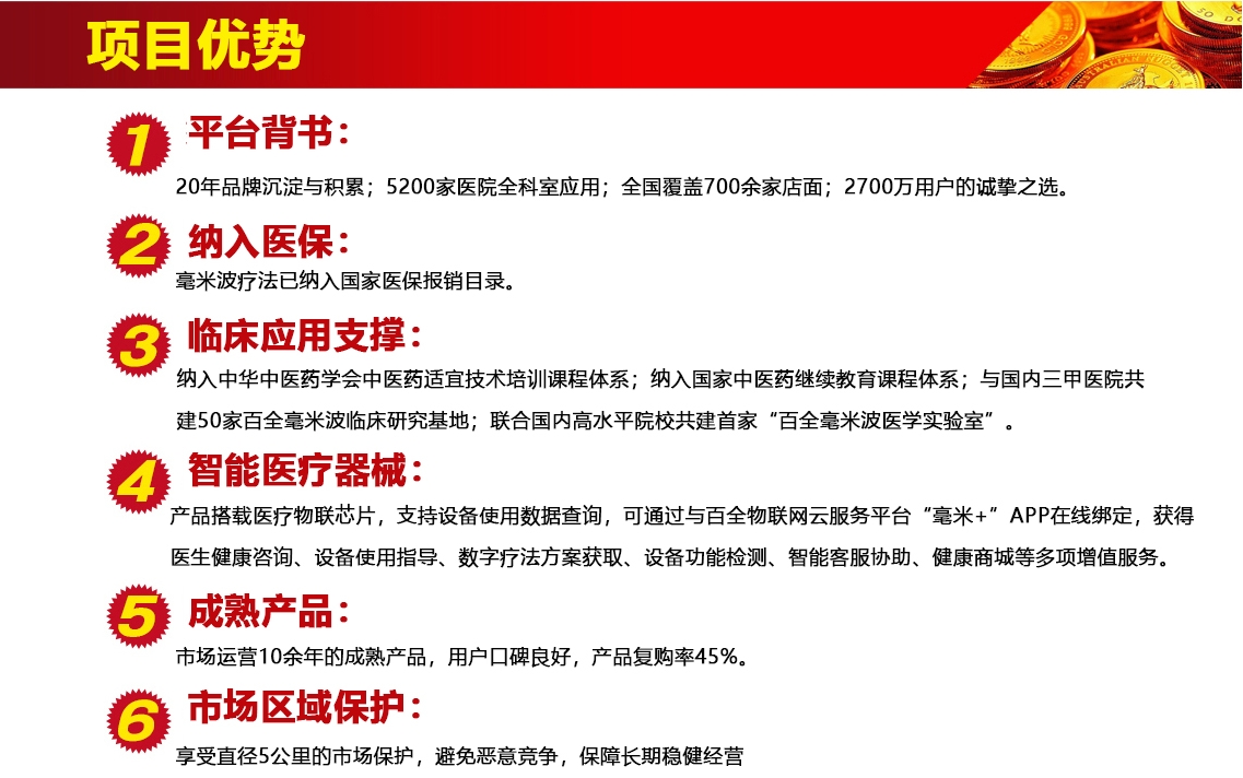 目前,毫米波療法已納入醫(yī)保報銷目錄,由中成康富生產(chǎn)的百全毫米波治療設(shè)備已進入全國各大三甲醫(yī)院、“三級、二級、一級、社區(qū)醫(yī)院”5200余家,產(chǎn)品累計使用人次超過2700萬。同時,中成康富聯(lián)合國內(nèi)三甲醫(yī)院成立50家“百全毫米波臨床研究基地”,與山東第一醫(yī)科大學(xué)等國內(nèi)知名高校共建“百全毫米波醫(yī)學(xué)實驗室”,用于產(chǎn)品上市后的再臨床,把產(chǎn)、學(xué)、研、用有效的結(jié)合,形成了政府、企業(yè)、醫(yī)院、患者多方共贏的局面。